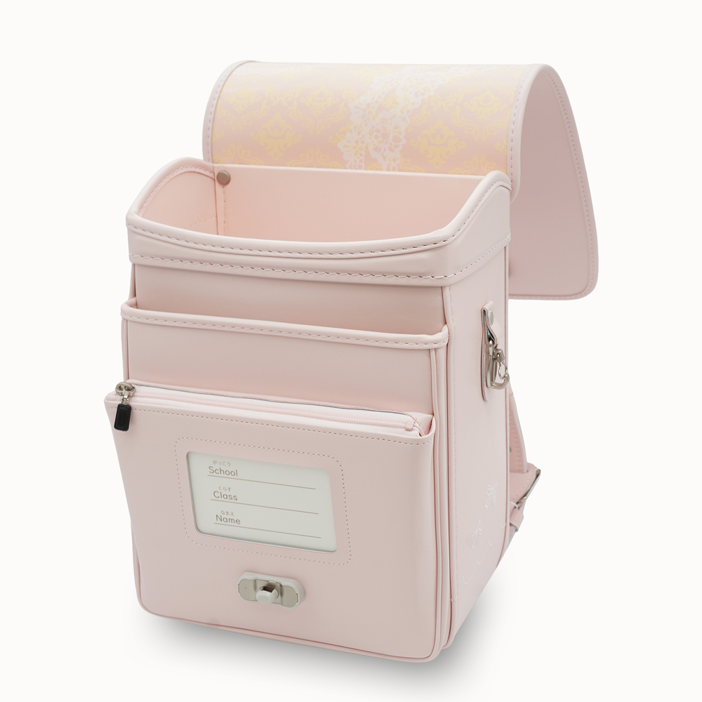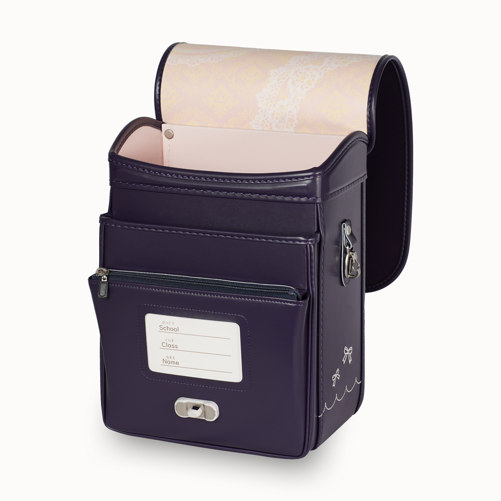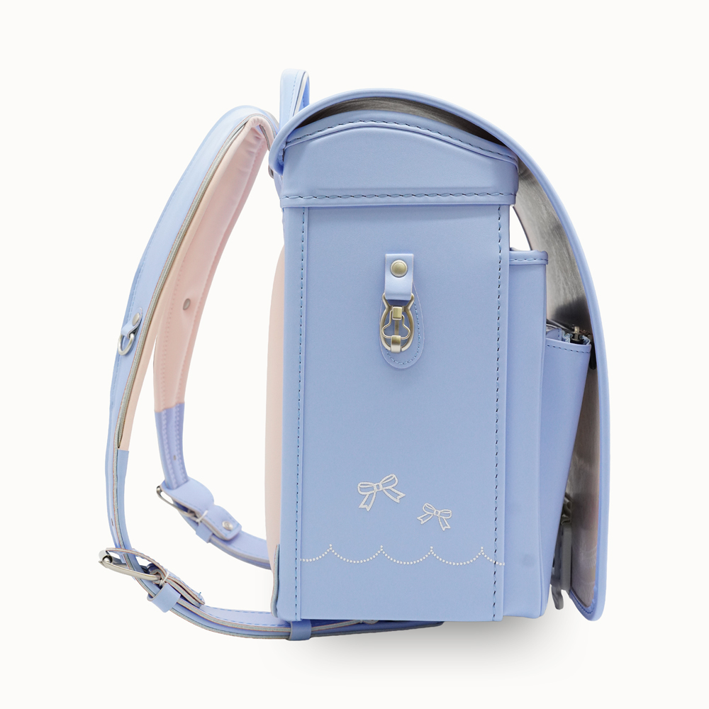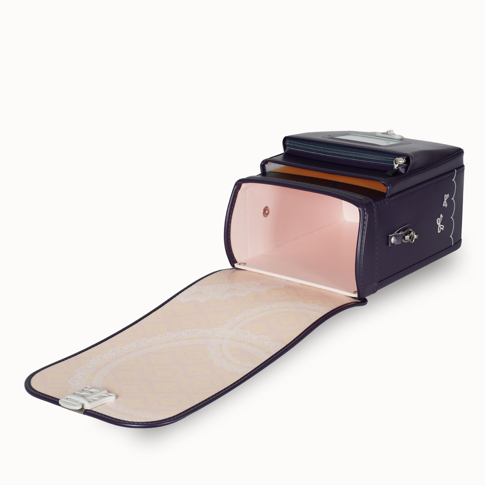 13.5cmマチを採用し、大容量と軽さを実現した新世代ランドセル。ワンタッチでらくらく開閉可能なミラクルタッチを搭載し、カブセには上品なリボンの飾りが特徴です。 (リボンストラップ付き)