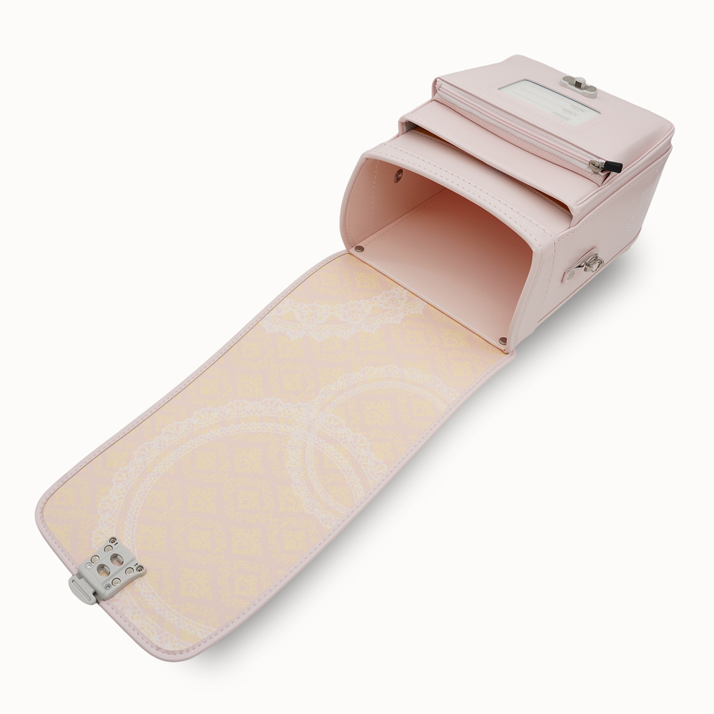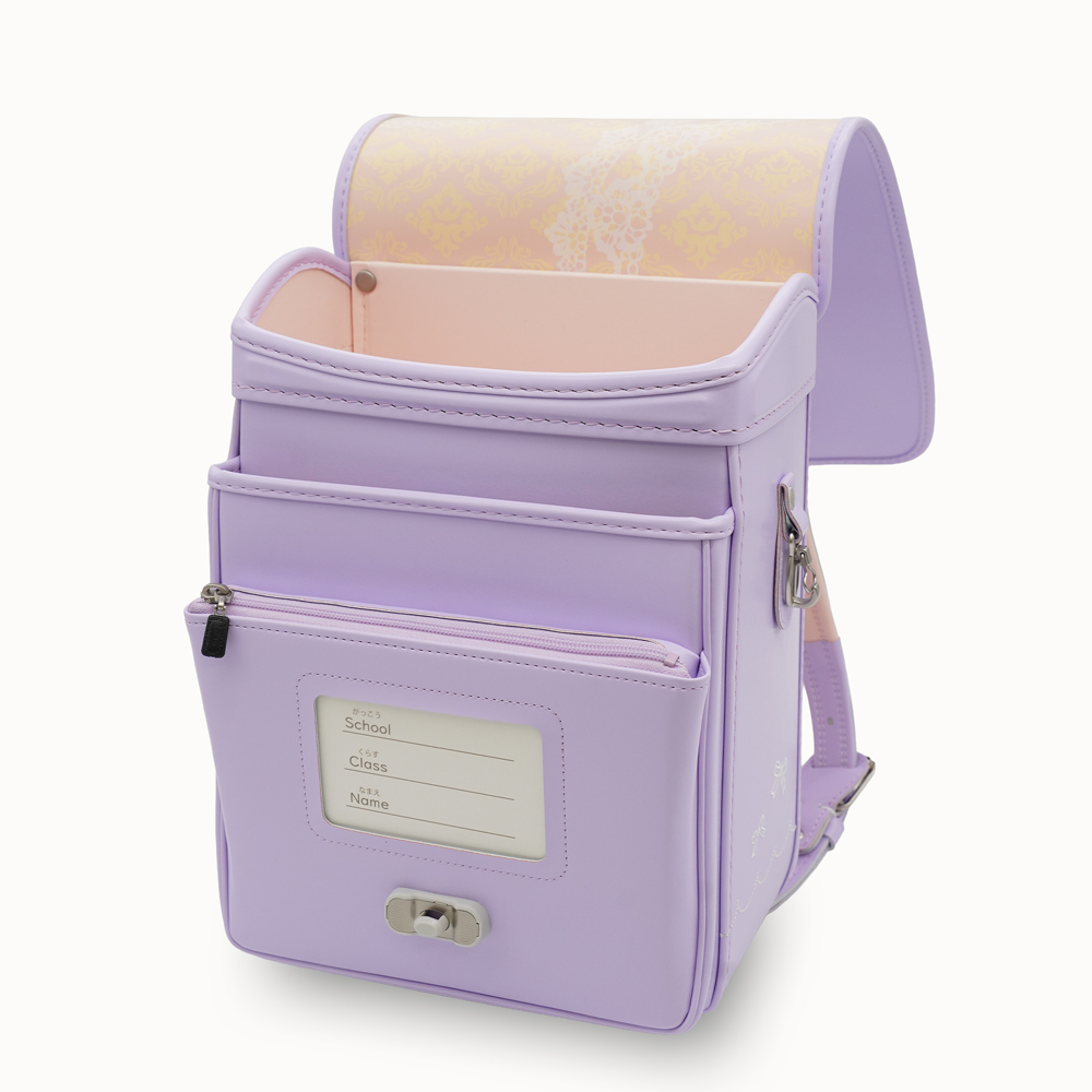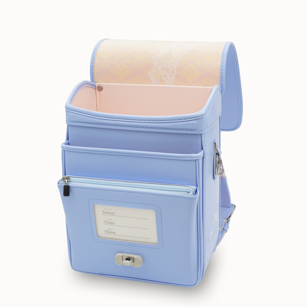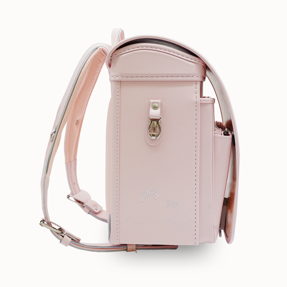 13.5cmマチを採用し、大容量と軽さを実現した新世代ランドセル。ワンタッチでらくらく開閉可能なミラクルタッチを搭載し、カブセには上品なリボンの飾りが特徴です。 (リボンストラップ付き)